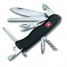 Ніж Victorinox OUTRIDER Vx09023.3 - швейцарський складаний ніж, універсальний мультитул, великого розміру. Матеріал-нержавіюча сталь. Колір рукояті-чорний, накладка виконана з пластику, поверхня-матова. Дуже зручний, не ковзає у руці. Ніж має 11 інструментів і виконує 14 функцій - велике лезо, пила по дереву, ножиці, відкривання пляшок і консервна, викрутка, шило, штопор, кільце для ключів, пінцет і зубочистка. Висота-111 мм.