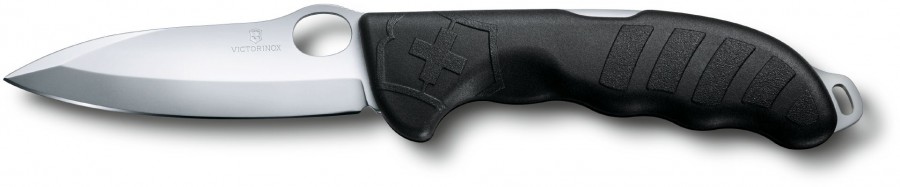 Ніж Victorinox HUNTER PRO Vx09411.M3 - класичний складаний швейцарський ніж. Матеріал-нержавіюча сталь. Колір рукояті-чорний, поверхня-матова, фактурна, виготовлена з високоякісного пластику. Зручний, практичний, що не ковзає в руці. Ніж складається з одного великого леза великого розміру з фіксатором. Висота-136 мм.