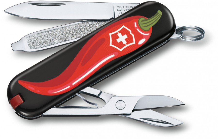 CLASSIC LE Vx06223.L1904 - швейцарський складаний ніж-брелок. Практична класика. Колір рукояті-чорний, з малюнком "перець", виконаний із спеціального пластику. Матеріал-нержавіюча сталь. Ніж містить 6 елементів, що виконують 7 функцій. В наявності такі предмети - ніж, пилочка для нігтів та викрутка, ножиці, пінцет та зубочистка, кільце для ключів. Є чохол. Розміри-58 * 18 * 9