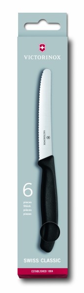 Набор кухонный SwissClassic Tomato&Sausage Gift Set 6 ножей 11см закругл.нос, волн. с черн. ручкой