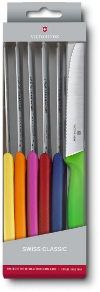 Набір кухонний SwissClassic Tomato&Sausage Set 6 ножів 11см закругл. ніс, хв. з кольор. ручкою (GB) .