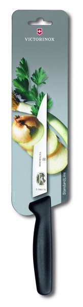 Кухонний ніж Victorinox Carving Vx51803.15B - універсальний кухонний ніж з вузьким лезом та загостреним носом. Чудовий для самої різнопланової нарізки. Рукоятка виготовлена з поліпропілену, колір-чорний. Матеріал леза - нержавіюча сталь, довжина - 15 см. Упаковка блістер.