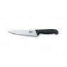Кухонний ніж Victorinox Fibrox Carving Vx52003.15 - швейцарський кухонний ніж, з короткою піднятою ручкою та широким лезом. Колір рукояті-чорний, матовий, матеріал-термоеластопласт. Лезо виготовлене з нержавіючої сталі, довжина-15 см.