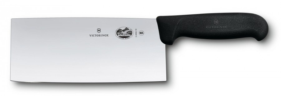 Кухонний ніж Victorinox Fibrox Chef's Vx54063.18 – швейцарський кухонний ніж, великий, з широким прямокутним лезом. Ідеальний для роботи із м'ясними продуктами. Колір рукояті-чорний, матовий, матеріал-термоеластопласт. Довжина леза-18 см, виготовлено з нержавіючої сталі.