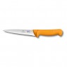 Кухонний ніж Victorinox Swibo Boning&Sticking Vx58412.15 - класичний кухонний ніж зі зручною ручкою та прямим коротким лезом, злегка піднятим до верху. Колір рукоятки - соковитий жовтий, матовий, матеріал - довговічний поліамід. Довжина леза-15 см, виготовлено з нержавіючої сталі.