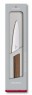 Кухонний ніж Victorinox Swiss Modern Kitchen Vx69010.15G - швейцарський кухонний ніж з дерев'яною ручкою горіхового кольору і широким лезом. Матеріал леза – нержавіюча сталь, довжина – 15 см. Універсальний повсякденний варіант. Запаковано в сіру коробку.