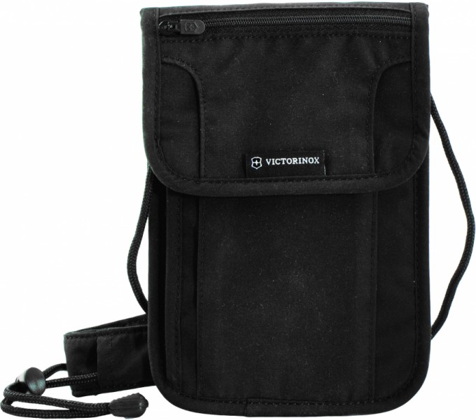 Сумочка – клатч Victorinox Travel Vt311719.01 чорна. Вигляд – на шию. Форма – вертикальна. Матеріал – поліестер. Вага – 0,1 кг. Ширина – 21 см, висота – 14 см, товщина – 1 см. Сумочка - клатч виготовлена із щільного поліестеру, стилізованого під натуральну замшу, із застосуванням спеціальної екранованої тканини, завдяки якій набуває RFID захисту. Ця функція забезпечує блокування зчитування персональної інформації з карток та документів, що зберігаються всередині, а також запобігає їх розмагнічуванню. Сумка оснащена шнурком регуляції довжини для використання сумочки/клатча на шиї. Сумка має 1 містке внутрішнє відділення та 1 зовнішню кишеню на блискавці. Гарантія – 3 роки. Виробництво – Швейцарія.