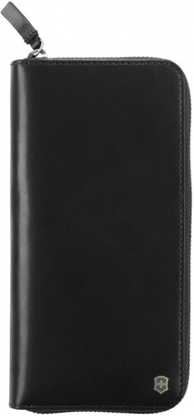 Портмоне вертикальної форми на блискавці - неймовірно елегантний жіночий аксесуар середнього розміру. Розкішний зовнішній вигляд, виконаний у чорному кольорі. Виготовлено із натуральної шкіри. Внутрішня організація вражає функціональністю-вісім слотів для кредитних і дисконтних карток, три суцільні відділення під купюри, і два відділи для різних дрібниць-чеків, квитків, візиток. У виробі також є RFID-захист від зчитування особистих даних. Розміри-10,2 * 19,6 * 2,3