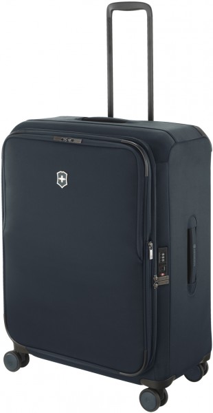 Валіза на 4 колесах Victorinox CONNEX SS Vt609874. Колір-синій. Валіза з розширенням на 4 подвоєних колесах. . Логотип бренду на передній панелі. Розмір L-великий:44x65x30-34, об'єм:69-78л Країна реєстрації бренду:Швейцарія Країна виробник:Швейцарія Гарантія:3 роки.