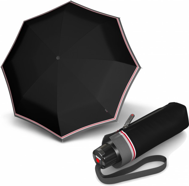 Парасолька Knirps Kn95 3010 4050 чорна. Серія T.010 Small Manual. Розмір бані - 95 см. Довжина складеної парасольки - 18 см. Вага - 260 гр. Складна парасолька механічна - відкривається і закривається вручну. Матеріал каркасу зі спеціального сплаву алюмінію та скловолокна, що забезпечує міцність конструкції, незважаючи на легку вагу. Матеріал спиць – алюміній. Матеріал наконечників – скловолокно. Містить 8 спиць. Матеріал купола – 100% поліестер. Покриття купола забезпечує водо-і брудовідштовхувальні властивості. Парасолька має м'який чохол, завдяки якому його можна покласти в нього навіть у вологому стані. Забезпечений системою "антивітер". За рахунок якої спиці парасольки не ламаються навіть під дією сильного вітру. Ручка в чорно - сірому кольорі з символом компанії Knirps - червона точка. Для зручності використання ручка оснащена петлею, за рахунок якої можна носити парасольку в руці, зап'ястя або вішати на гачок. Матеріал ручки: пластик. Гарантія – 2 роки. Виробництво – Німеччина.