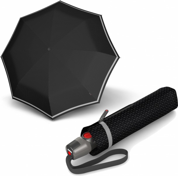 Парасолька Knirps Kn95 3200 7154 чорна. Серія T.200 Medium Duomatic. Розмір бані - 98 см. Довжина складеної парасольки - 28 см. Вага - 320 гр. Повний автомат – процес відкривання та закривання виконується за допомогою однієї кнопки. Матеріал каркасу зі спеціального сплаву алюмінію та скловолокна, що забезпечує міцність конструкції, незважаючи на легку вагу. Матеріал спиць – алюміній. Матеріал наконечників - фіберглас. Містить 8 спиць. Матеріал купола – 100% поліестер. Покриття купола забезпечує водо- і брудовідштовхувальні властивості. Парасолька має м'який чохол, завдяки якому його можна покласти в нього навіть у вологому стані. Забезпечений системою "антивітер". За рахунок якої спиці парасольки не ламаються навіть під дією сильного вітру. Ручка в чорно - сірому кольорі з символом компанії Knirps - червона точка. Для зручності використання ручка оснащена петлею, за рахунок якої можна носити парасольку в руці, зап'ястя або вішати на гачок. Матеріал ручки: пластик. Гарантія – 2 роки. Виробництво – Німеччина.
