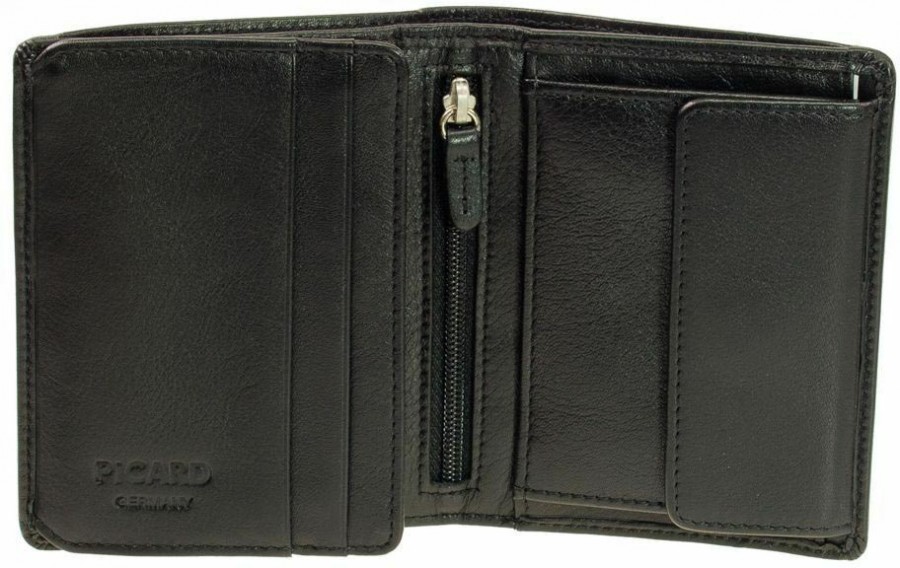 Шкіряне портмоне Picard BROOKLYN Pi8215-043-001. Вертикальне чоловіче портмоне чорного кольору для щоденного використання. Зручна модель стане справжнім подарунком для шанувальників ергономічних та компактних аксесуарів. У портмоне два відділення для банкнот, шість відділень для пластикових карток, кишеня для дрібниці, три відкриті кишені (одна з них сітчаста для документів). Портмоне поєднує у собі чудові функціональні можливості та елегантний дизайн. Підійде чоловікам, які цінують практичні та якісні речі. Матеріал: Високоякісна шкіра. Колір чорний. Розміри: 8,5x10,5x2,5см Виробник: Німеччина Гарантія: 2 роки