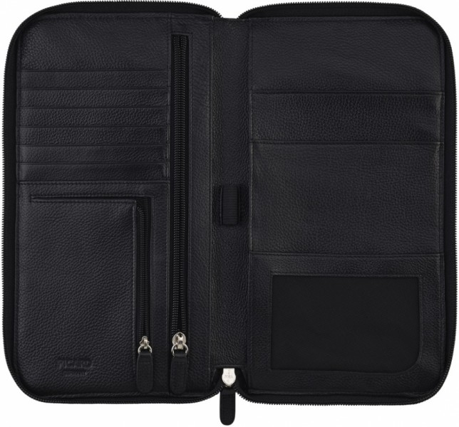 Тревеллер Picard TRAVELKIT 1 Pi8227-50T-001. Стильний чоловічий тревелер чорного кольору для щоденного використання. Закривається на блискавку. Зручна модель стане справжнім подарунком для шанувальників ергономічних та компактних аксесуарів. Одне велике відділення, що закривається на блискавку, 7 кишеньок для пластикових карток, три прорізні кишені, прозоре відділення для документа. Існує зручна ручка для руки. Тревеллер поєднує у собі чудові функціональні можливості та елегантний дизайн. Підійде чоловікам, які цінують практичні та якісні речі. Високоякісна шкіра. Колір чорний. Розміри: 26x14x3 см. Вага: 0,27 кг. Виробник: Німеччина Гарантія: 2 роки