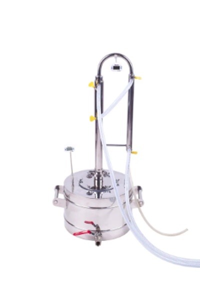 Дистилятор Стандарт на 34 літри виготовлений з нержавіючої сталі AISI 304, яка відповідає вимогам харчової промисловості. Товсте феромагнітне дно завтовшки 4 мм дозволяє використовувати ємність на різних нагрівальних поверхнях: газовій, електричній, індукційній. У стандартній комплектації цей прилад здатний виготовляти будь-який алкоголь: кальвадос, класичний самогон, ракія, віскі, бурбон та інше. Можна використовувати перегінний куб як бродильну ємність як бродильну ємність. Вуглекислий газ, який виділяють дріжджі, вільно виходитиме через гідрозатвор. Вам не знадобляться додаткові ємності для приготування сировини для перегонки.