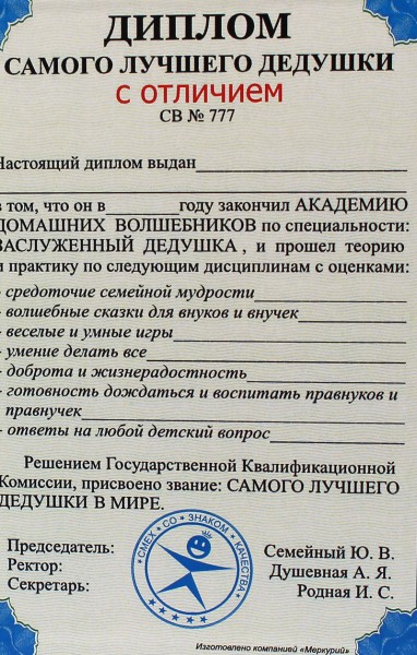 Диплом " Найкращого дідуся "