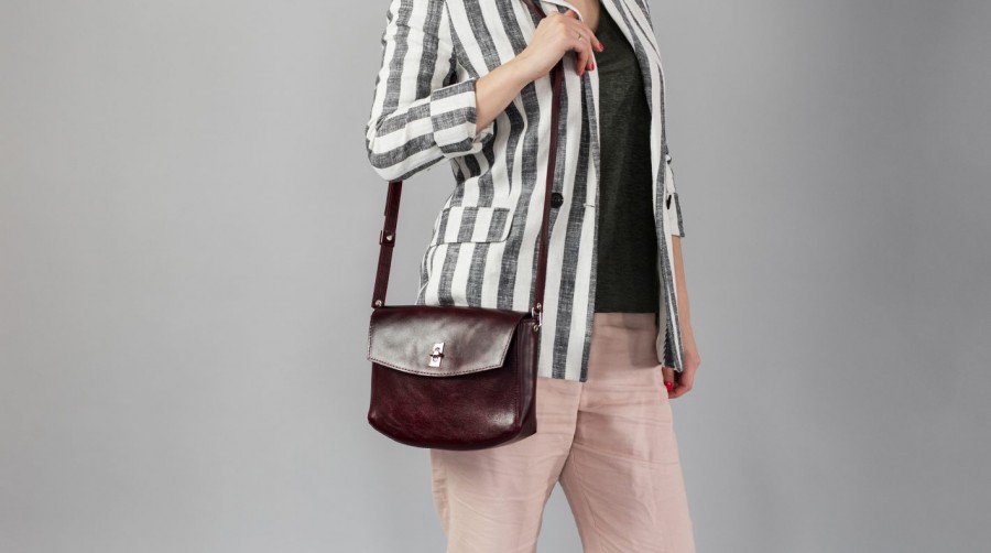 Розмір: 25/20/8 см Матеріал: шкіра, тканинна підкладка Застібається на поворотний замок Оснащена внутрішньою кишенею У комплекті: шлейка для носіння на плече та коротка на руку Фурнітура: металева, колір нікель