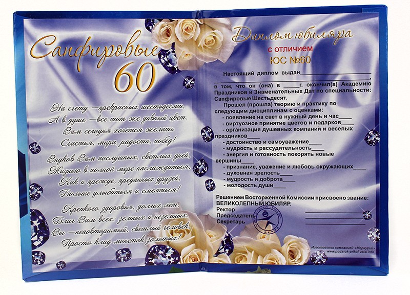 Характеристики товару Диплом ювіляра Сапфірові 60