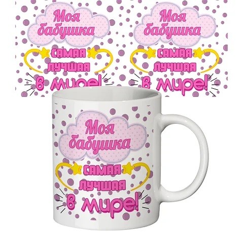 Кухоль Моя бабуся - сувенір, що запам'ятовується, для коханої бабусі. У свою чергу така чашка може стати справжнім, добрим спогадом, подарованим з частинками кохання для близької людини.