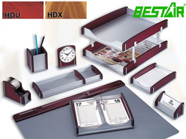 Набір настільний Bestar 9-ти предметний з натурального дерева та алюмінію.
