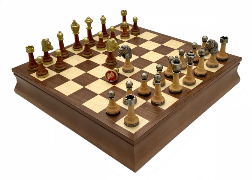 Шахи всесвітньо відомого італійського бренду Italfama. Дошка виготовлена із дерева. Фігурки колекції Staunton виготовлені з дерева, цинку, латуні, нікелю.