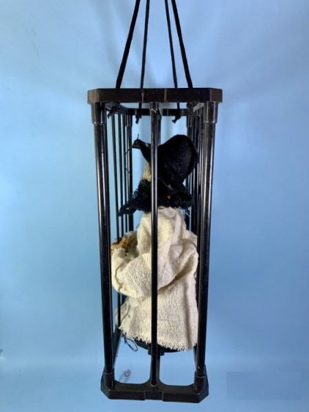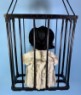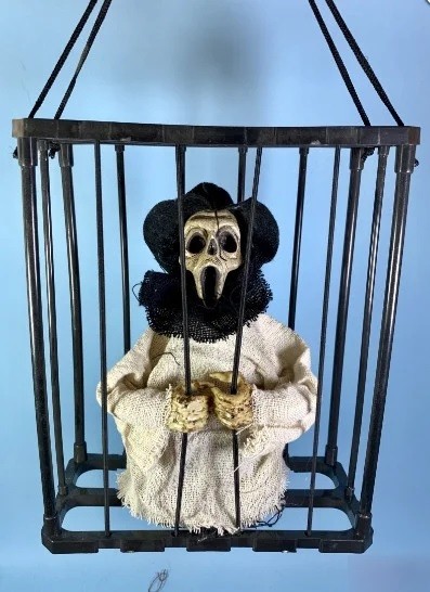 Жахливий декор на Хелловін - нежити в клітці, музична, страшно кричить і трясе клітку