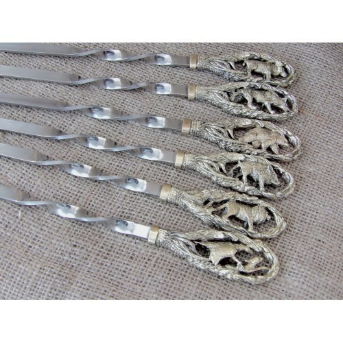 Рукоятка: ювелірне художнє лиття з бронзи у вигляді звірів "Ведмідь", "Кабан", "Лев", "Орел", "Лось", "Вовк" (при використанні ручка не нагрівається).