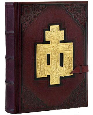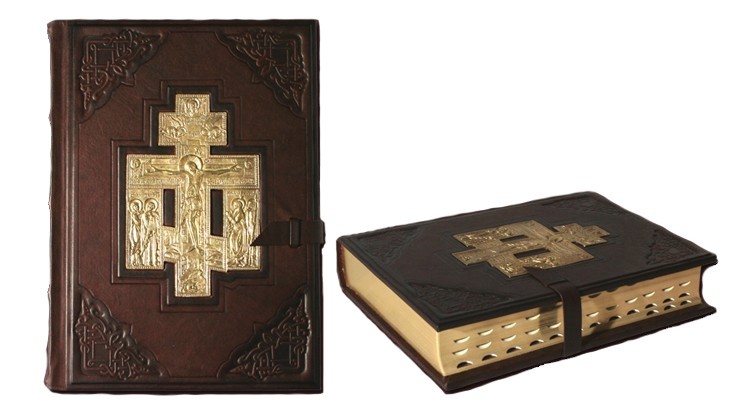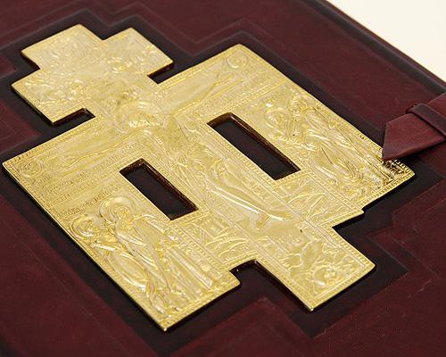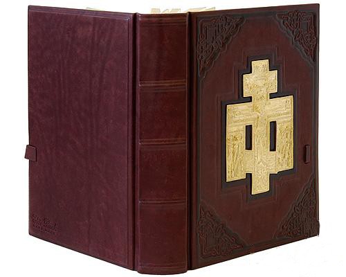 - Оформлення: об'ємне тиснення, рисовий папір, художнє лиття на обкладинці у вигляді хреста, шкіряний хлястик, тристоронній золотий обріз.