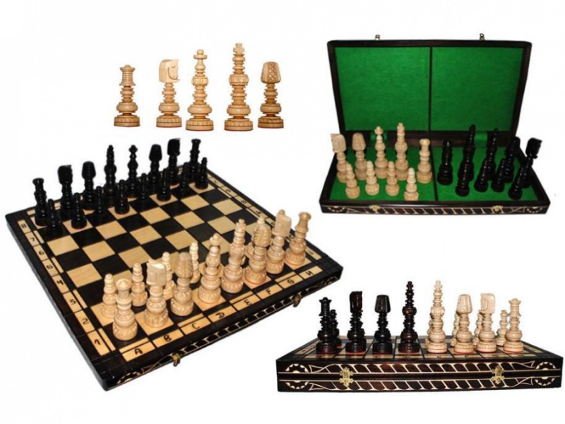 Шахи «Марс» від Madon, Польща – виготовлені з масиву дерева. Фігури та дошка мають унікальний дизайн, фігури вирізані вручну, шахівниця оформлена декоративними елементами різьблення та випалювання. Шахи, названі на честь легендарного бога, просто створені для великих перемог. Фігури та дошка цих шахів виготовлені з екологічно чистої деревини. З боку дошки розташовані два металеві замки золотистого кольору. Усередині дошка покрита зеленою повстю. Розмір клітин відповідає стандартам ФІДЕ. Різьблені фігури виготовлені з масиву деревини платана, матового кольору. Нижня частина фігур обклеєна зеленою повстю, щоб захистити дошку від пошкоджень під час гри.