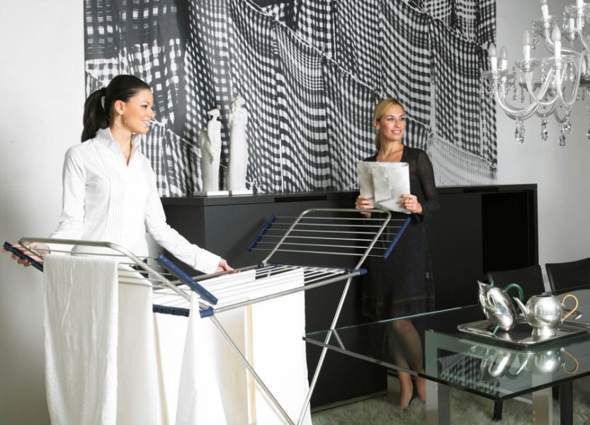 Сталеві елементи конструкції мають антикорозійне покриття. Одна з опорних стійок обладнана роликовим механізмом, завдяки якому переміщення всієї конструкції житловим приміщенням стало надзвичайно легким і максимально безпечним по відношенню до поверхні підлоги. Робочі напрямні збільшеного діаметра не залишають смуги на білизні у процесі сушіння. Надійна та практична, виготовлена з екологічно чистих матеріалів, сушарка для білизни Gimi Tempo Super стане надійним помічником, як у приватному будинку, так і у квартирі.