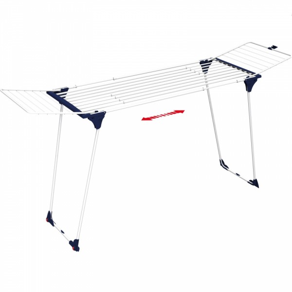 Сушарка для білизни Gimi Dinamik 30 це високоякісний 100% італійський продукт! Компактна сушарка з великою робочою поверхнею. Унікальність моделі Dinamik 30 у розсувній телескопічній системі, розробленій компанією Gimi. Завдяки розсувній конструкції телескопічних напрямних робоча поверхня може бути сумарно збільшена до 27 метрів, що дозволяє вільно розвісити як великі простирадла, так і білизну невеликих розмірів. Каркас моделі Dinamik 30 виконаний за типом Free Space, що дозволяє розташувати білизну під час сушіння максимально вертикально по всій висоті, при цьому виключено контакт білизни безпосередньо з опорними ніжками сушарки. Товар відповідає основним європейським стандартам якості та безпеки – GS TUV.