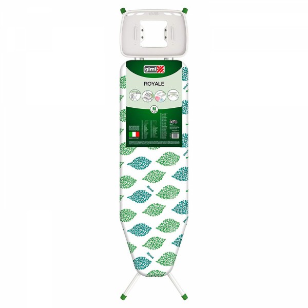 Класична дошка для прасування Gimi Royale - це високоякісний 100% італійський продукт! Модель Gimi Royale відповідає не тільки основним європейським стандартам якості та безпеки, що підтверджується маркуванням CE , але й суворішим стандартам Німеччини та Франції, що підтверджується маркуванням GS TUV та NF відповідно. Дана прасувальна дошка обладнана підставкою для праски з термостійкими силіконовими вставками, що захищають поверхню праски від подряпин. Модель Royale зручна та функціональна для прасування білизни різних форм та розмірів. У складеному вигляді дошка займає мінімум місця, що дозволяє зручно зберігати її у приміщенні.