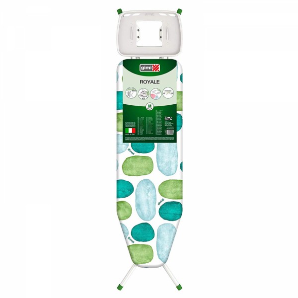 Класична дошка для прасування Gimi Royale - це високоякісний 100% італійський продукт! Модель Gimi Royale відповідає не тільки основним європейським стандартам якості та безпеки, що підтверджується маркуванням CE , але й суворішим стандартам Німеччини та Франції, що підтверджується маркуванням GS TUV та NF відповідно. Дана прасувальна дошка обладнана підставкою для праски з термостійкими силіконовими вставками, що захищають поверхню праски від подряпин. Модель Royale зручна та функціональна для прасування білизни різних форм та розмірів. У складеному вигляді дошка займає мінімум місця, що дозволяє зручно зберігати її у приміщенні.