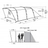 Намет Easy Camp Palmdale 500 - сімейний тунельний намет з вітальнею, двома окремими входами та комфортними затемненими роздільними спальнями на дві та три особи. Велике панорамне вікно зі шторою створює внутрішнє відчуття простору, а передній навіс захищає вхід від дощу. Високі стелі у житловій зоні утворюються за рахунок попередньо вигнутих дуг, що дозволяє стояти дорослій людині на повний зріст. Вентиляційні відсіки над фронтальними вікнами та в тильній частині намету забезпечують циркуляцію та приплив свіжого повітря. Сон без комах гарантують D-подібні двері спалень з антимоскітними сітками, розташованими у верхній частині. Відсік на блискавці дозволяє прокласти електрокабель та організувати кемпінгову кухню всередині намету. Повністю вшита підлога тамбуру убезпечить від протягів та вогкості. Easy Camp Palmdale 500 ідеально підходить для зростаючих сімей, яким потрібен універсальний намет для комфортного відпочинку на свіжому повітрі.