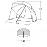 - Намет (Д х Ш х В): 140 х 140 х 115 см