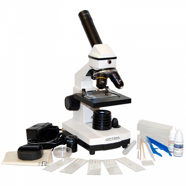 Мікроскоп Optima Discoverer 40x-640x Set - студентський мікроскоп з металевим корпусом у розширеній комплектації для досліджень початкового рівня в галузі біології та медицини. Мікроскоп забезпечує значну варіативність спостережень, завдяки наявності підсвічування світлом, що проходить і відбитим. Оптична схема мікроскопа та подвійне світлодіодне підсвічування дозволяють досить докладно вивчати не тільки структуру поверхні різних матеріалів та мінералів, а й проводити спостереження клітин у біологічних зрізах рослин та тканин живих організмів. Живлення від батарей і від мережі змінного струму, а також світлодіодне підсвічування визначають цю модель як мобільний мікроскоп, готовий до використання в будь-якому місці і в будь-який час. Усі мікроскопи Optima мають розширену трирічну гарантію та сертифіковані на території України.