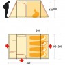- Внутри палатка разделяется на 2 помещения съемной текстильной перегородкой, фиксируемой в специальных петлях