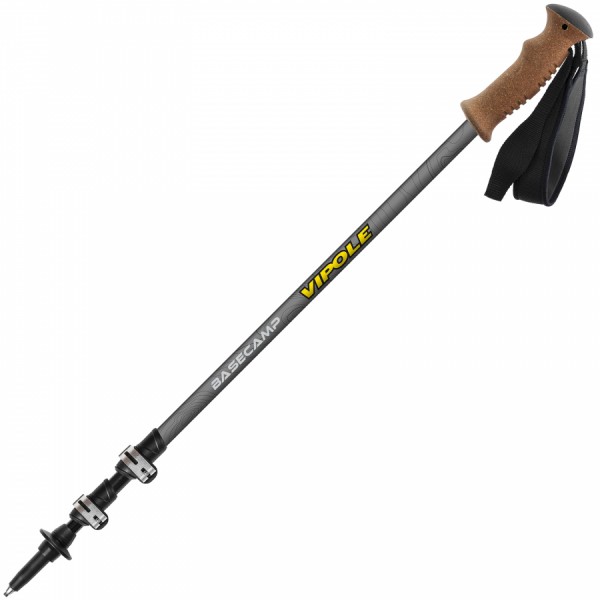 Усі трекінгові палиці Vipole Base Camp виготовлені з міцного алюмінієвого сплаву Alu 7075 та обладнані системою фіксації Quick Lock, яка забезпечує надійність та гарантує зручність зміни довжини телескопічної палиці у будь-яких погодних умовах. Base Camp - серія досить універсальних трекінгових палиць, які не обтяжують своєю вагою і в той же час можуть використовуватися при тривалих складних переходах з важким спорядженням. Ергономічна рукоятка з пресованої пробки має найкращі водонепроникні та теплоізоляційні властивості. Наконечник з карбіду вольфраму має високу твердість і характеризується великою стійкістю до зношування. Трекінгові палиці комплектуються фірмовим чохлом для перенесення.