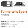 Тунельний тримісний намет Dutch Mountains Wolfsberg 3 Grey призначений для комфортного відпочинку на природі. Це чудовий вибір для всіх любителів подорожей. Модель має два входи та подовжений тамбур, в якому можна організувати кемпінгову кухню та розмістити всі необхідні речі. Два бічні вікна наповнять внутрішнє приміщення світлом. Зовнішній тент із проклеєними швами має водостійкість 2000 мм в.ст. Москітні сітки на вентиляційних панелях, основні вхідні двері та двері спального місця захищають від настирливих комах. Чотиризонна система вентиляції збільшує приплив свіжого повітря, а також позбавляє утворення конденсату. Намет швидко встановлюється, порівняно трохи важить, завдяки чому може використовуватись для туристичних походів.