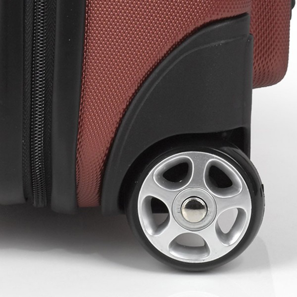 Валіза оснащена парою надійних коліс, які виготовлені з високотемпературного термопластичного поліуретану (TPU). Матеріал має міцність порівнянну з пластиком, гнучкістю силікону, а також має підвищену стійкість до перепадів температур. Відмінною особливістю коліс із TPU матеріалу є зниження шуму до мінімуму при коченні валізи по нерівній поверхні. Завдяки стійкості до стирання матеріал коліс відрізняється тривалим терміном експлуатації.