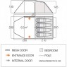 - Особливості: Спальне місце 210 х 250 см TBS®II система розтяжок Протипожежне просочення Місткий тамбур
