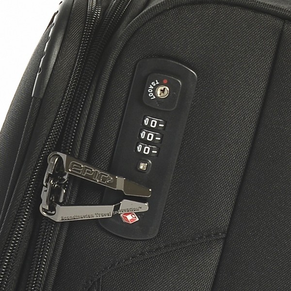 - TSA LOCK™ by TRAVEL SENTRY® - чемодан оборудован специальным кодовым замком с функцией таможенного досмотра TSA LOCK™. Не смотря на то, что современные технологии позволяют таможенным службам аэропортов проводить досмотр чемоданов с помощью специальных сканеров, иногда возникает необходимость вскрыть чемодан для более детальной проверки. Администрация транспортной безопасности США (Transportation Security Administration) совместно с компанией Travel Sentry разработала кодовые замки, которые могут быть открыты только специальными ключами, за которые сотрудники безопасности аэропортов несут персональную ответственность. Таким образом, при физическом досмотре и вскрытии багажа, замки и молнии останутся целы, и секретный код замка также будет сохранен. Сегодня множество служб безопасности аэропортов по всему миру одобрили и используют ключи системы TSA LOCK™ для досмотра багажа. Полный список стран и производителей багажа, официально использующих замки TSA LOCK™ можно посмотреть на сайте производителя Travel Sentry. Чемоданы EPIC, отмеченные логотипом Travel Sentry, оснащены замками системы TSA LOCK™ и соответствуют стандартам глобальной безопасности путешествий.
