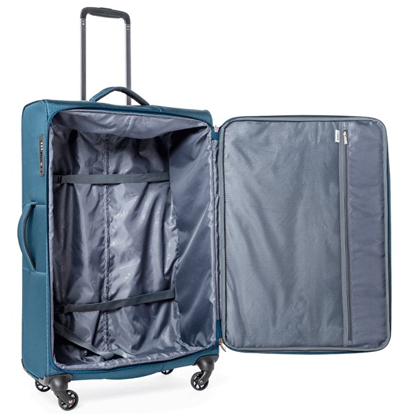 - SOFT SHELL POLYESTER 500D - ткань из полиэстера с толщиной нити 500D, имеющая объемный крупный узор, создающий внешнюю игру света, и с внутреннее полиуретановое покрытие, защищающее содержимое чемодана от намокания во время дождя средней интенсивности. Также ткань обладает хорошей износостойкостью, и не разрушается под действием ультрафиолетового излучения.