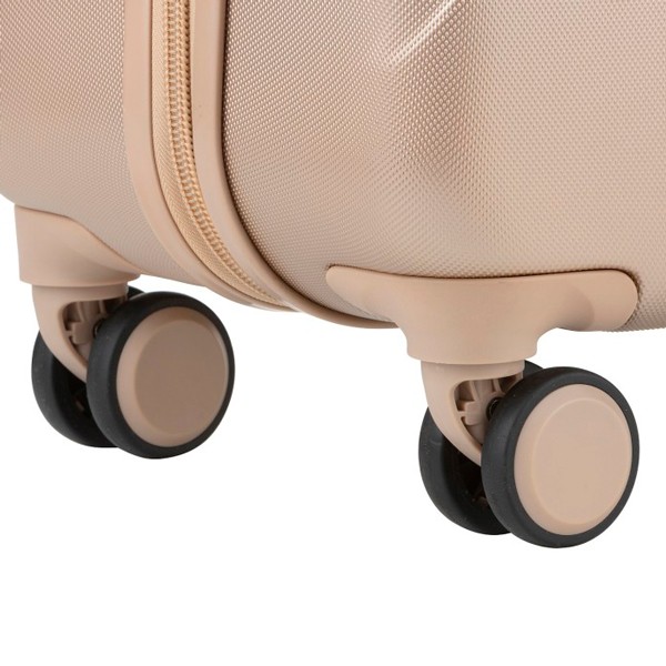 Валіза оснащена чотирма повноповоротними спареними колесами з можливістю незалежного розвороту кожного колеса на 360°. Системою передбачено рівномірний перерозподіл навантаження на кожне колесо, що у свою чергу сприяє плавному коченню та маневреності валізи, докладаючи при цьому мінімум зусиль. Колеса виготовлені із високотемпературного термопластичного поліуретану (TPU). Матеріал має міцність порівнянну з пластиком, гнучкістю силікону, а також має підвищену стійкість до перепадів температур. Відмінною особливістю коліс із TPU матеріалу є зниження шуму до мінімуму при коченні валізи по нерівній поверхні. Завдяки стійкості до стирання матеріал коліс відрізняється тривалим терміном експлуатації.