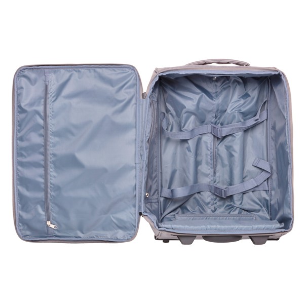 Ергономічна система висувної телескопічної ручки з кнопковим фіксатором дозволяє відрегулювати висоту висувної ручки для додаткової зручності та комфорту користувача. Внутрішній об'єм розділений перегородкою на два відділення та має ремені для фіксації речей та додаткові кишені.