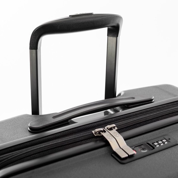 • Ручки у верхній та бічній частині валізи для зручності транспортування у вертикальному та горизонтальному положенні