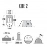 Туристичний двошаровий, 2-місний намет High Peak Kite. Зручний тамбур з підлогою, захищений від негоди вхід з вікном, антимоскітна сітка, легка вага, вентиляційний клапан, світловідбивна стрічка по периметру намету, проста установка.