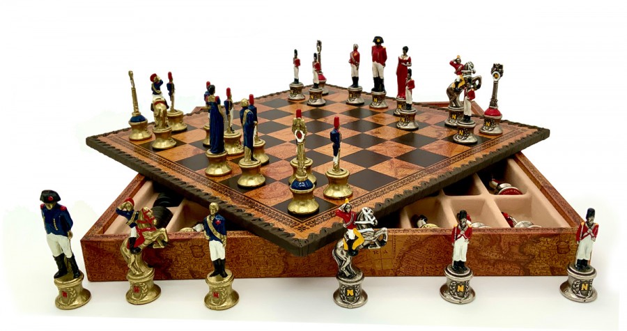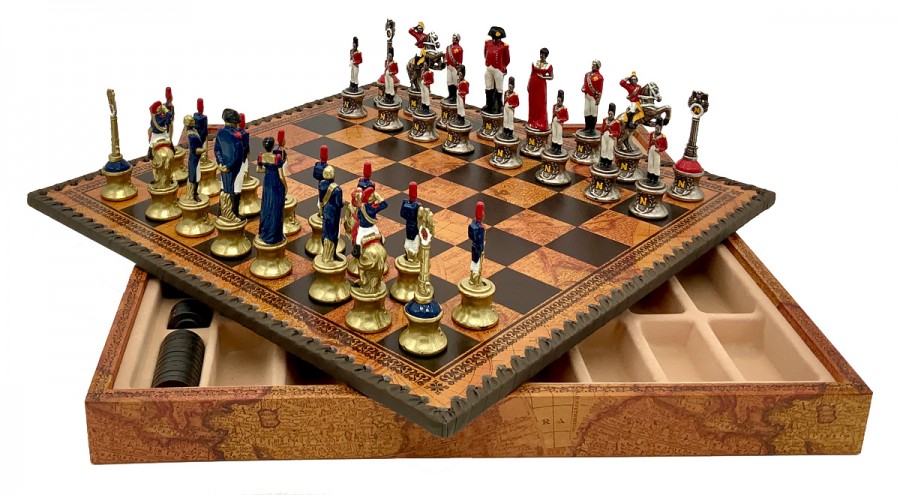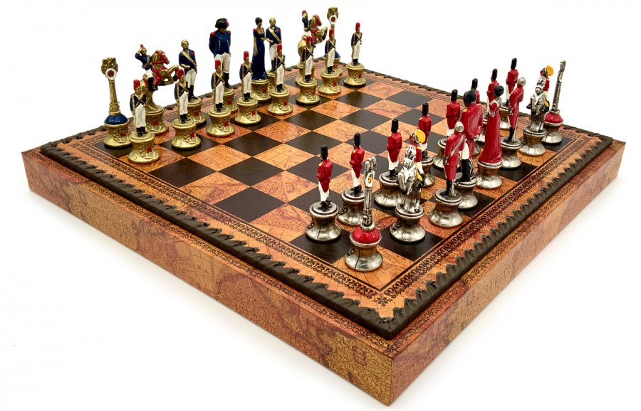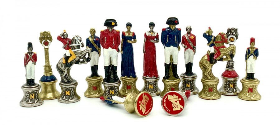 Шахи всесвітньо відомого італійського бренду Italfama. Дошка виготовлена з екошкіри. Розмір дошки: 35 x 35 x 4 cm, розмір квадрата: 3,5 cm. Фігурки колекції "Napaleone" виготовлені із цинку, латуні, нікелю.