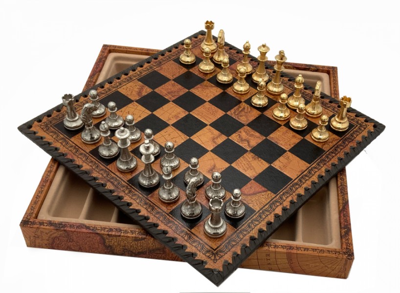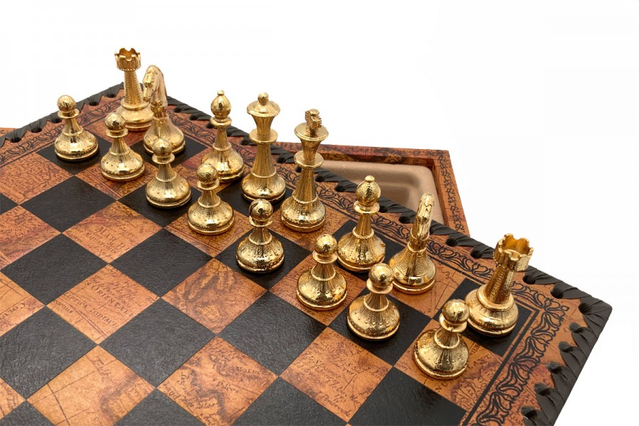 Шахи всесвітньо відомого італійського бренду Italfama. Дошка виготовлена з екошкіри. Розмір дошки: 28 x 28 x 3,5 cm, розмір квадрата: 2,8 cm. Фігурки колекції Mignon Fiorito виготовлені з цинку + позолота 24К та срібло 925 проби.