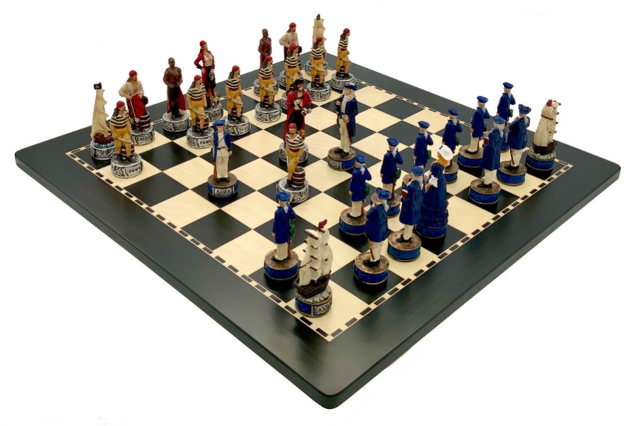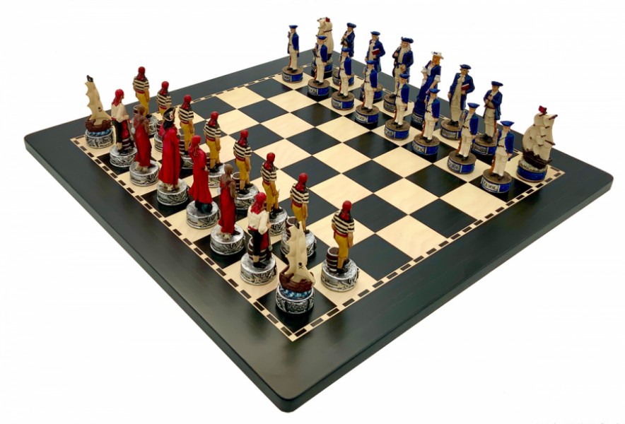 Шахи всесвітньо відомого італійського бренду Italfama. Дошка виготовлена із дерева. Розмір дошки: 40 x 40 x 1,2 cm, розмір квадрата: 4,0 cm. Фігурки колекції "Pirati" виготовлені з полістоуну
