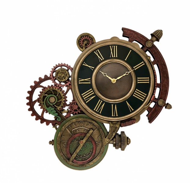 Настільний годинник з боєм у вигляді генератора. Сучасний стиль Стімпанк від італійської компанії Italfama. Виготовлені з полістоуну та покриті бронзою. Всі деталі годинника оброблені вручну. Розмір корпусу 22 см.